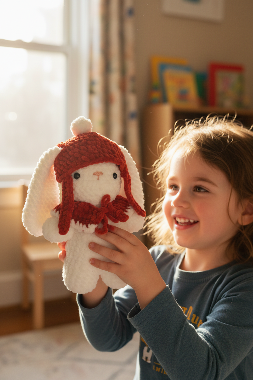 Craquez pour cet adorable lapin en crochet doté d’un bonnet et d’un châle, entièrement fait à la main avec soin. Sa laine douce et son rembourrage léger en mousse en font un compagnon parfait, à offrir ou à collectionner.